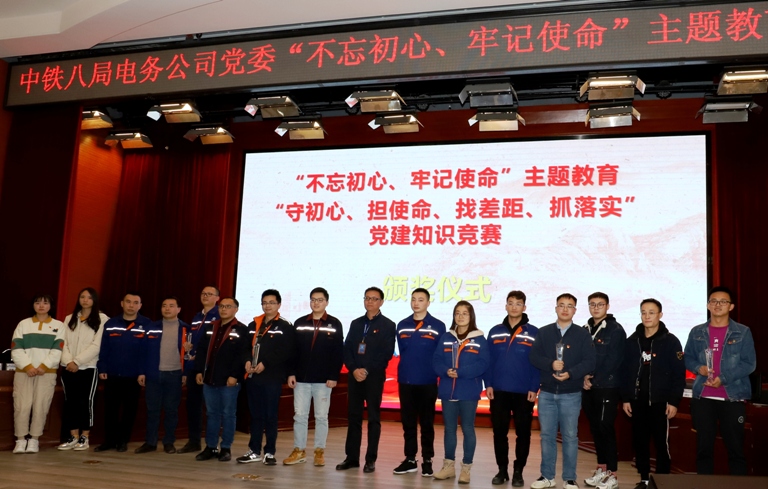 本次竞赛分预赛和决赛进行,经过上午笔试预赛的激烈角逐,9支代表队脱颖而出进入决赛。决赛分为必答题、抢答题和风险题三个环节,内容涵盖“不忘初心、牢记使命”主题教育、党章党规党纪、新中国史、习近平新时代中国特色社会主义思想、习近平总书记系列重要讲话和十九届四中全会精神等。必答环节各队选手准备充分,对答如流。抢答环节最为扣人心弦,现场高潮迭起,各参赛队员眼疾手快,纷纷紧握抢答器,你争我赶,比分紧咬不下。风险题环节中,各队仔细斟酌,抓住反超比分的最佳时机,现场呈现白热化状态。在观众席爆发的热烈掌声中,第一名“诞生”了,经过三轮比拼,机关代表队获得一等奖,供电一项目部、第九项目部、第十一、十二项目部(联合组队)代表队获得二等奖,接触网一项目部、机械设备租赁中心、供电二项目部、第十三项目部接触网三项目部代表队获得三等奖。