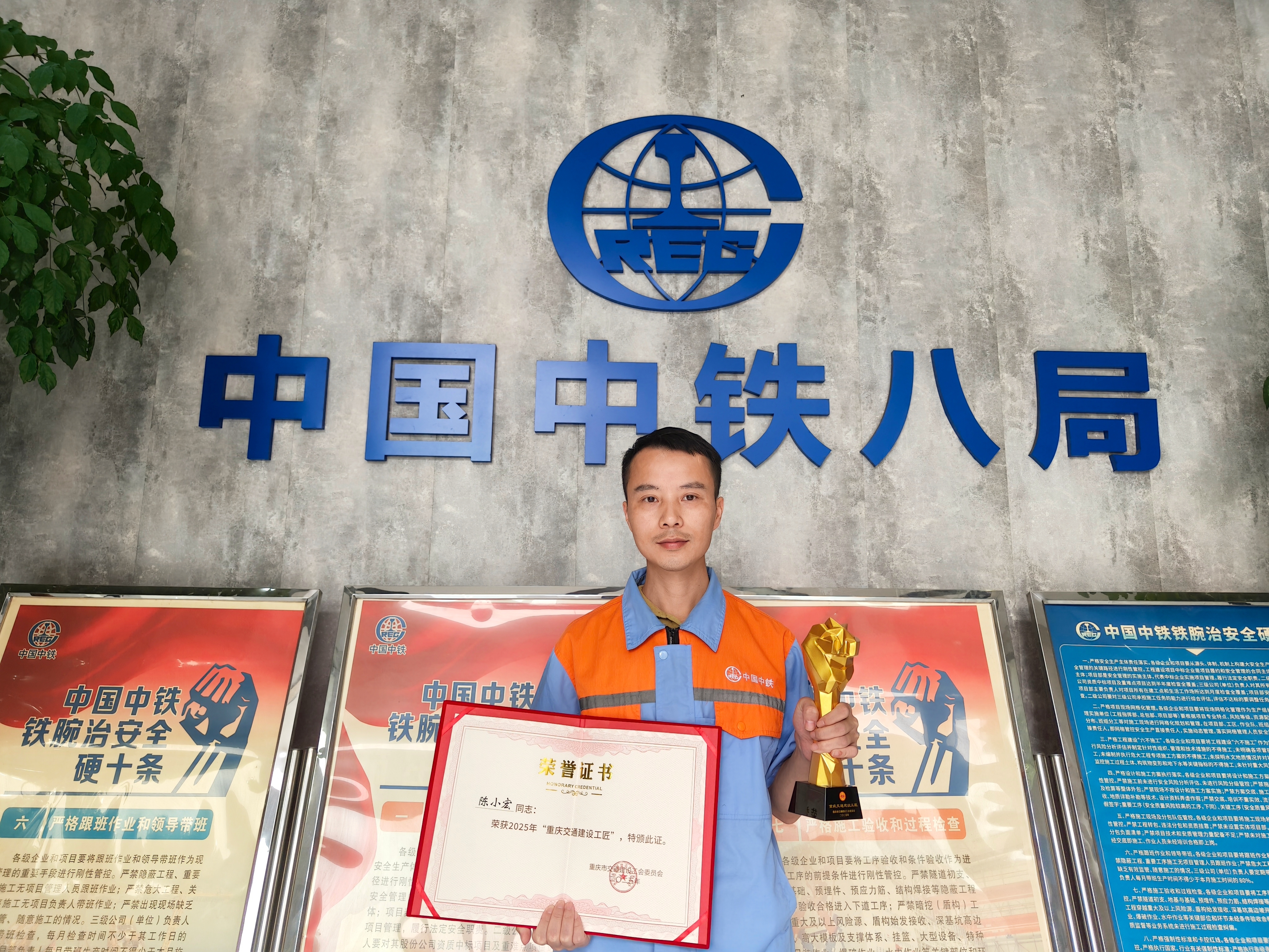 近日,重庆市交通建设工会传来喜讯,第五项目部总工程师陈小宏被授予2025年“重庆交通建设工匠”荣誉称号。这一荣誉的获得,标志着陈小宏经过一年系统培育和十五年一线坚守,正式成为重庆交通建设行业践行“五力”标准的优秀代表之一。