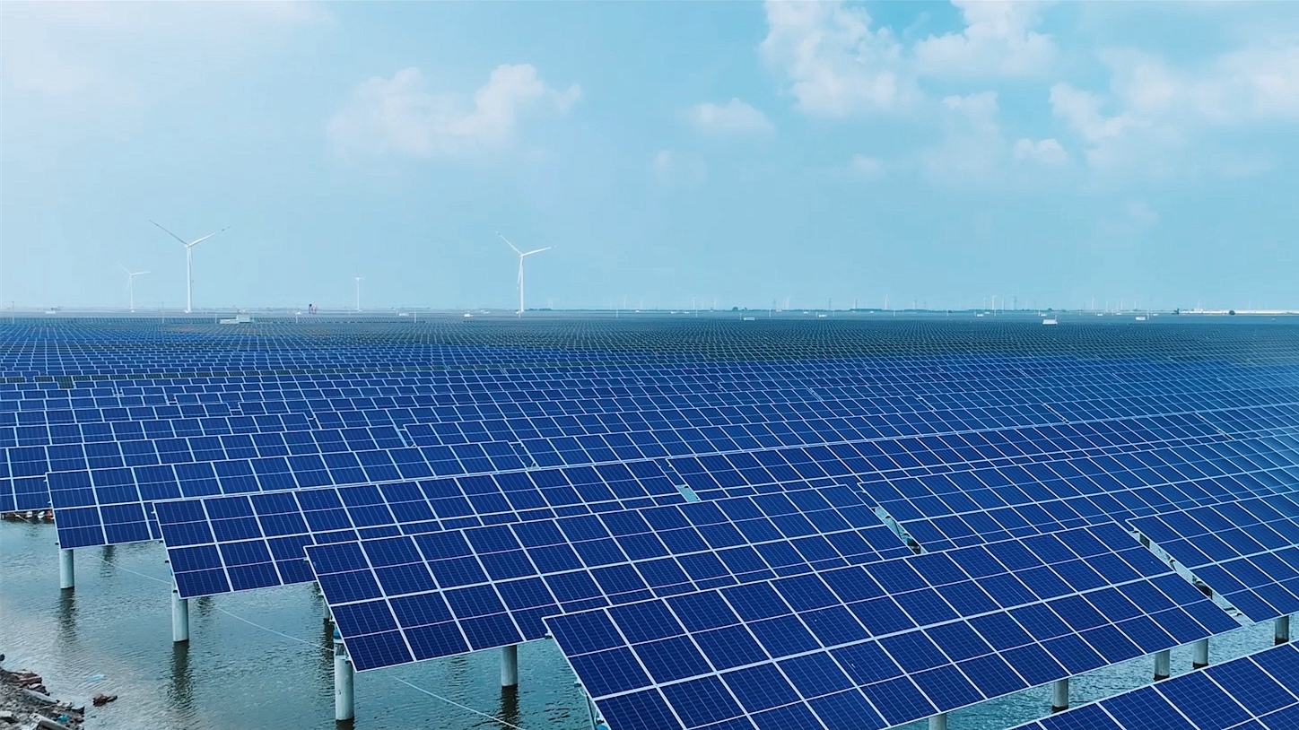 据悉,该工程选址于距滨州市中心约65公里的渤海之滨,占地面积达595.2亩,坐拥得天独厚的阳光资源。项目部科学采用“水下养殖、水上发电”模式,在提供稳定绿色电力的同时,维护了原有水产养殖功能,为当地创造了就业机会并促进了渔业可持续发展。项目建成后,预计每年可提供清洁电能5800万千瓦时,不仅能满足当地7万户家庭的日常用电需求,还能有效减少二氧化碳排放约19000吨,相当于植树约1万棵。