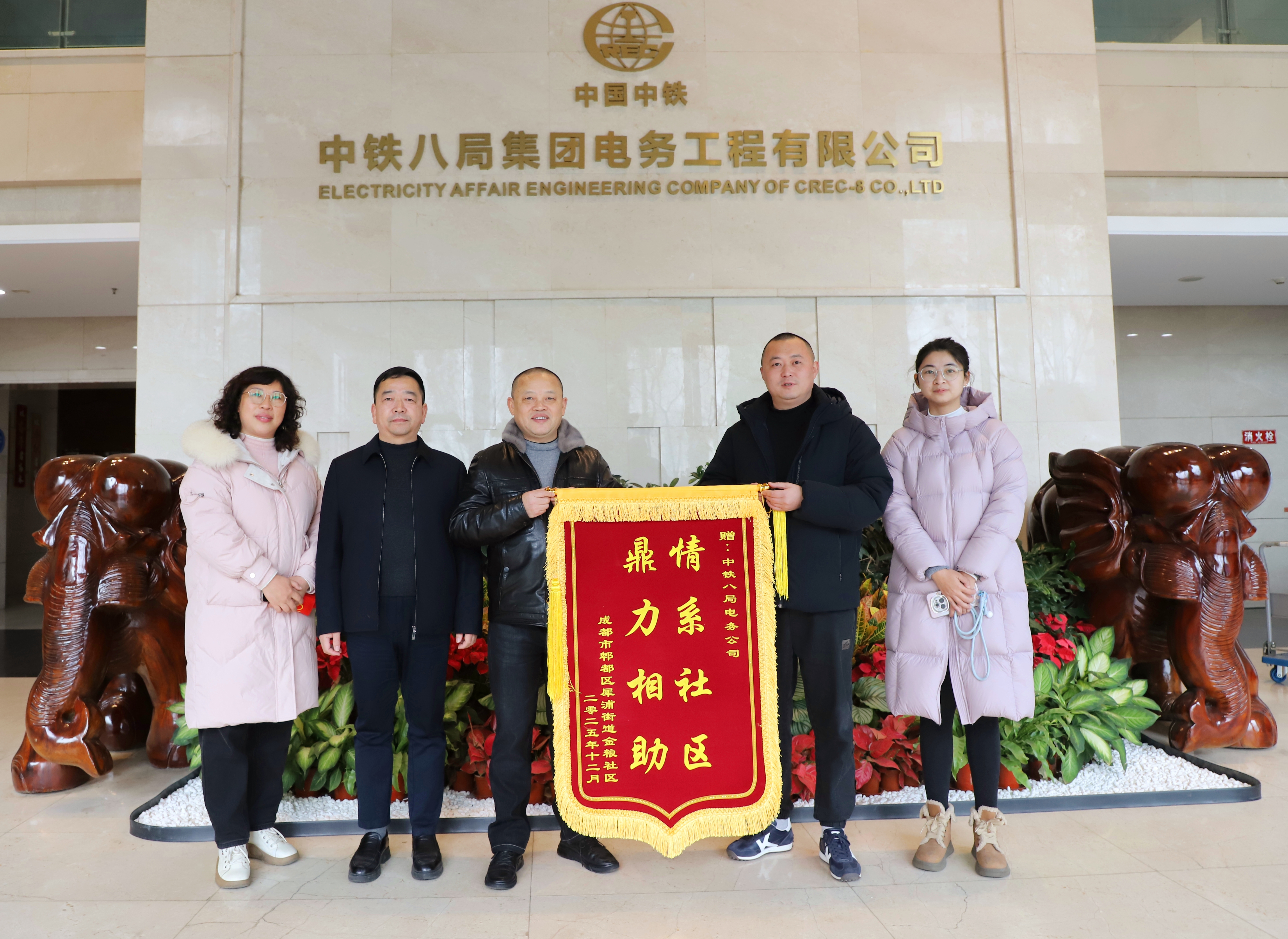 12月29日,成都市犀浦街道金粮社区负责人一行来到公司,将一面印着 “情系社区 鼎力相助” 的鲜红锦旗送到公司代表手中,以此感谢公司长期以来在社区安全建设、基层治理等工作中的突出贡献,见证社企同心共建的深厚情谊。