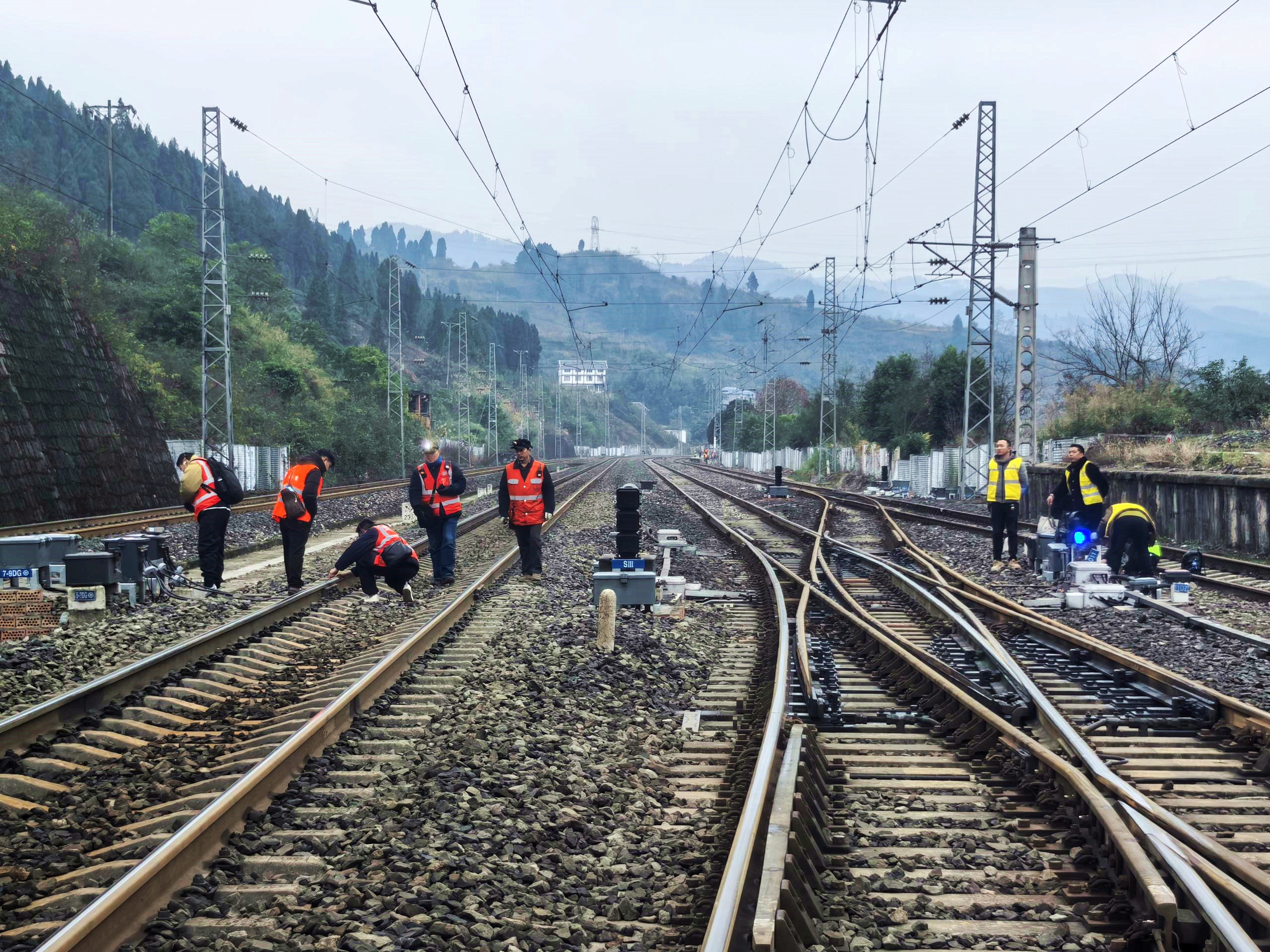 施工过程中,参建项目部严格遵循营业线施工相关管理规范,以“零事故、零缺陷”为目标,建立健全安全质量管控体系。面对既有线施工干扰大、安全风险高、工期紧张等挑战,施工团队科学制定施工方案,优化施工组织流程,充分利用天窗点开展作业,严格落实电缆沟开挖、轨道电路施工、联锁试验等关键环节安全卡控措施。全体参建人员昼夜奋战,先后完成艾田站152.7公里及乌江站234公里信号电缆敷设、数十组道岔设备升级、房屋改造装修等工程量,确保了工程质量与施工安全双达标。